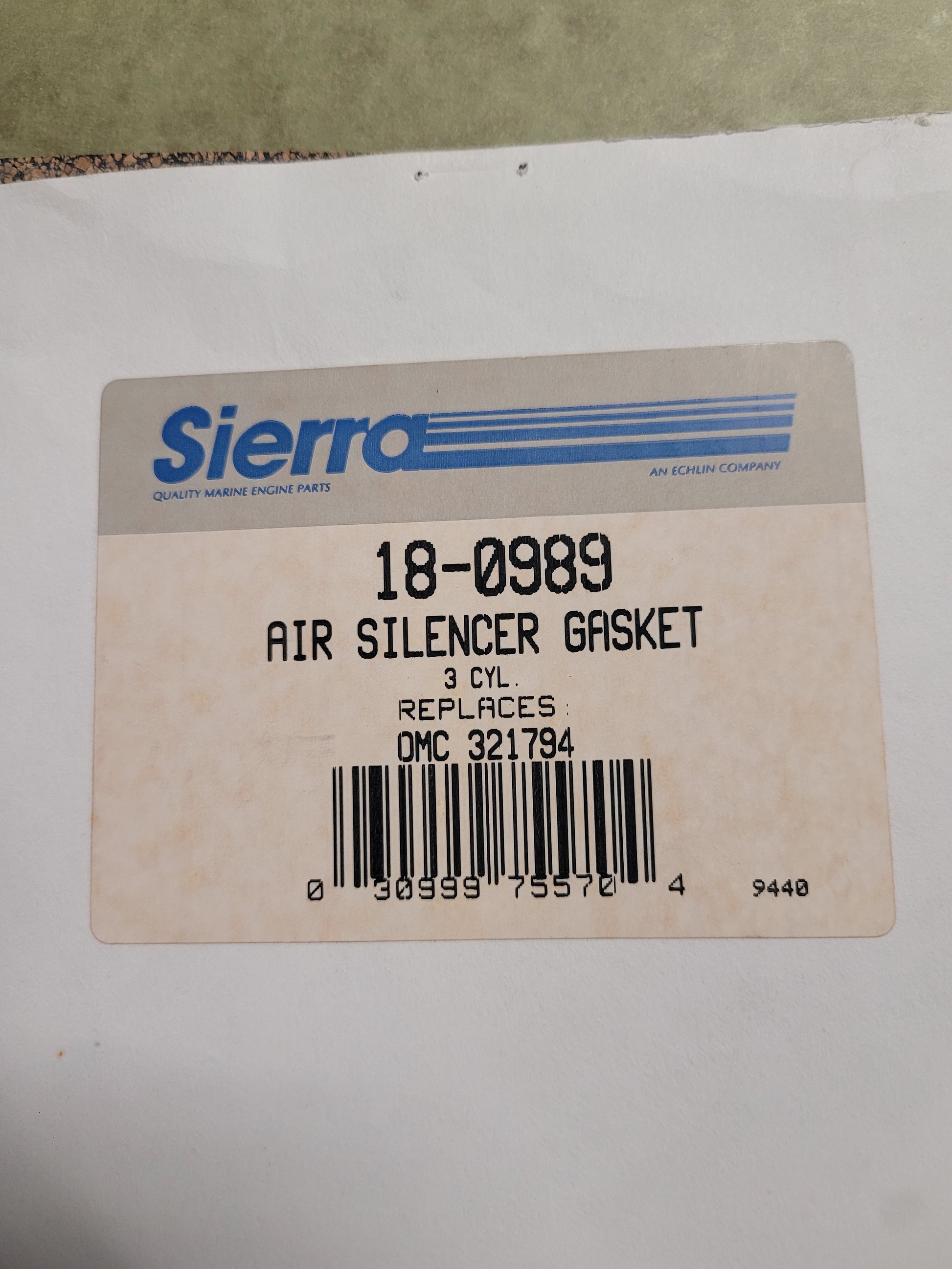 Air Silencer Gasket, (NOS) Sierra 18-1989