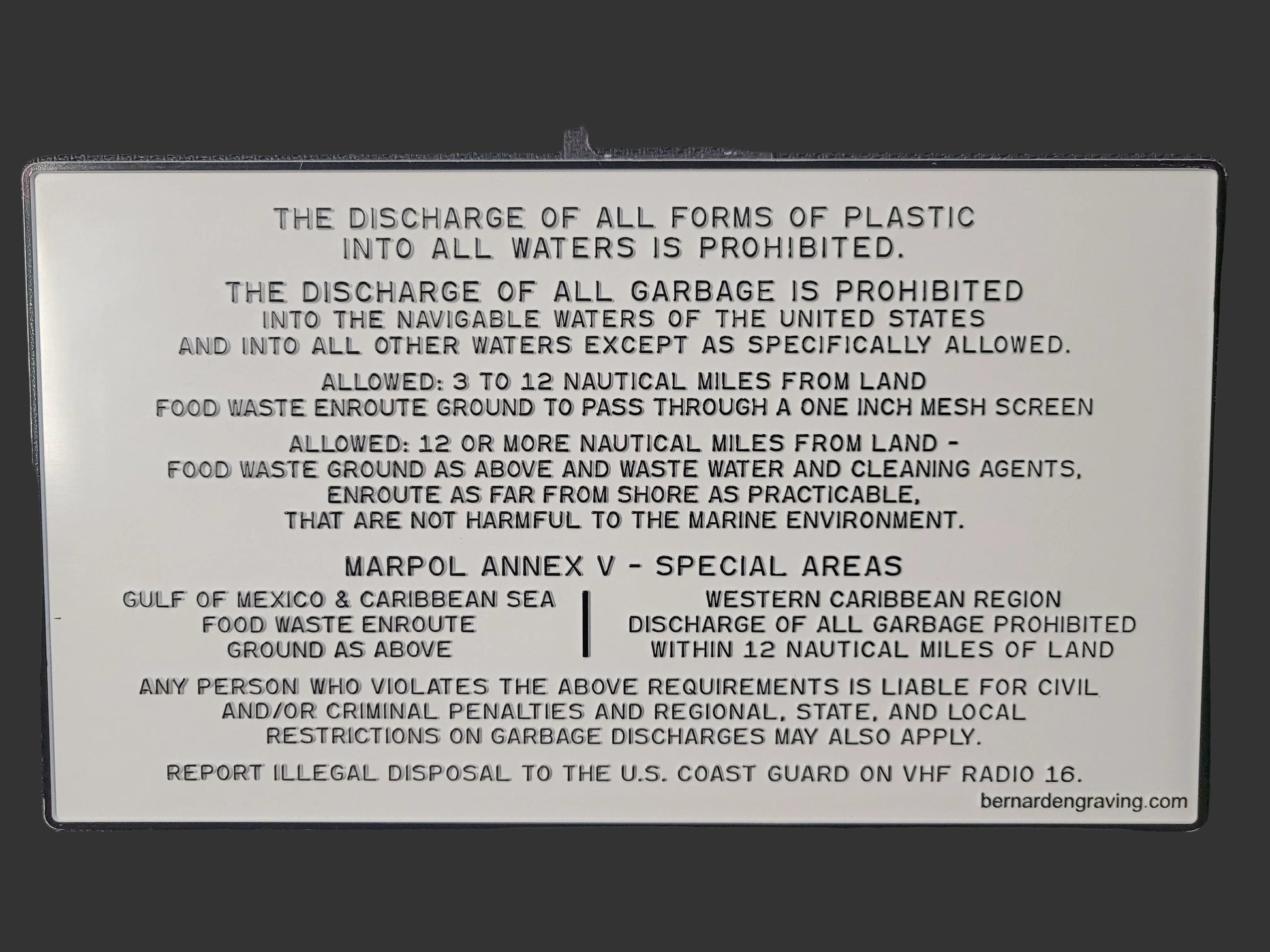 PLAQUE /ILLEGAL TO DUMP