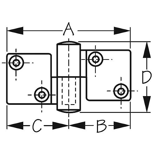 Corrosion resistant cast 316 stainless Take-Apart Hinges allow a door or lid to be removed after installation without having to remove the fasteners. Surface mounted. Can be used horizontally or vertically. Installs with four #10 FH fasteners (not included).