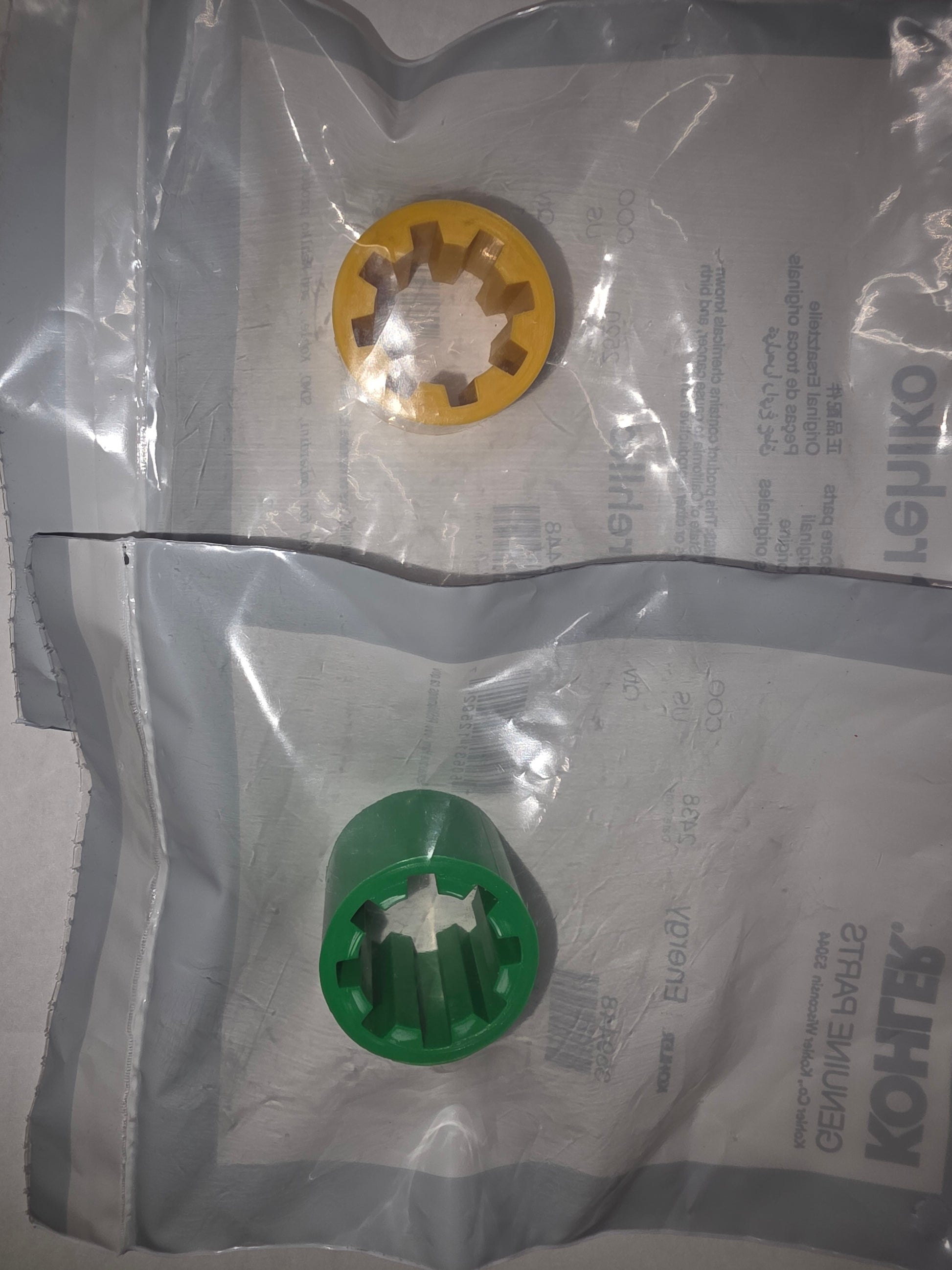 Kohler OEM Drive sleeve 359448 for 5E/7.3E & 5ECD/7.3ECD Carbureted and Injected models - Do you have a black drive sleeve ? If so, change it to the new style at your next pump or impeller change - If the impeller is intact and the pump is OK, but the impeller is not spinning, IT IS MOST LIKELY A BAD DRIVE SLEEVE! (Black->Yellow->Green)